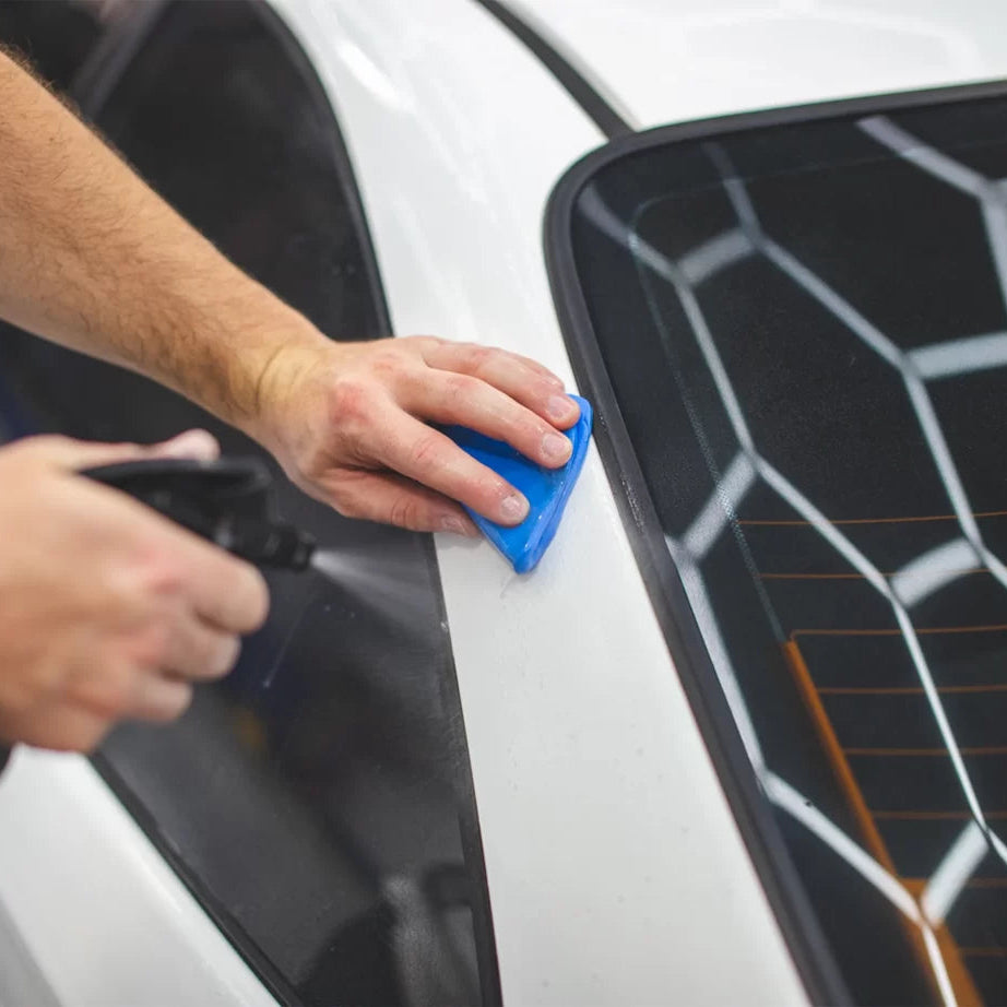 Lavez et séchez la voiture. Évitez le contact direct avec le soleil, car le lubrifiant et l’argile pourraient sécher trop vite et risqueraient de marquer la peinture. Pulvérisez un lubrifiant spécialisé pour barre d’argile. Avec une pression légère, faites glisser l’argile sur la carrosserie en mouvements linéaires. Travaillez sur de petites zones à la fois pour garder un bon contrôle de l’opération. Si un côté de l’argile devient trop chargé de saleté, pliez là pour exposer une surface propre. Après le passage de l’argile, rincez la surface : elle sera prête pour l’application d’un produit protecteur.